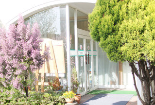 「病院らしくない病院」。南仏・地中海を想像させる外観をはじめ、 患者様が来院しやすいように約300台の無料駐車場を完備しています。